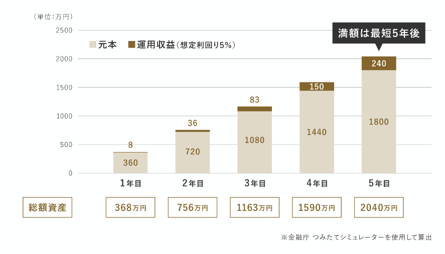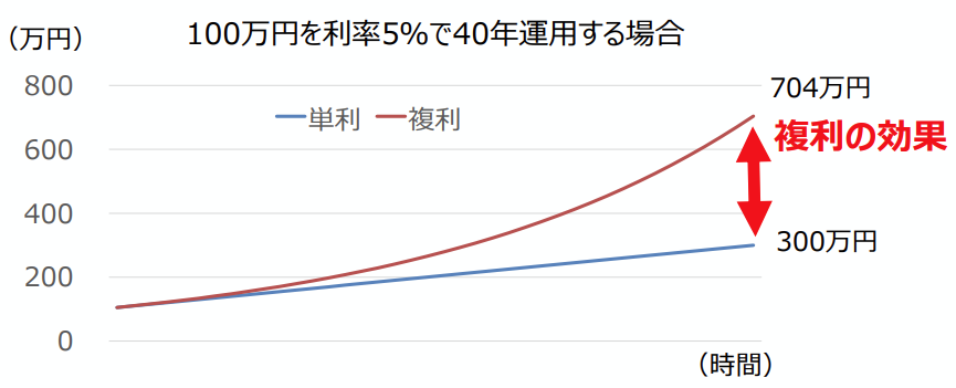 利息が利息を呼ぶ複利の効果は、期間が長いほど効果が大きくなることが期待できます。*6