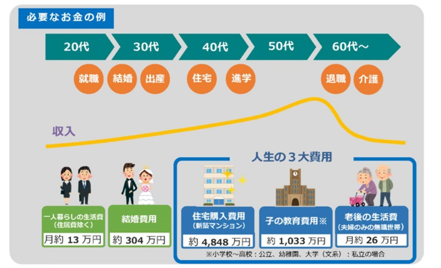 特に、学生時代から40代にかけては、就職、結婚、出産、住宅購入など、ライフステージが目まぐるしく変化し、必要となるお金も大きく変わってきます。