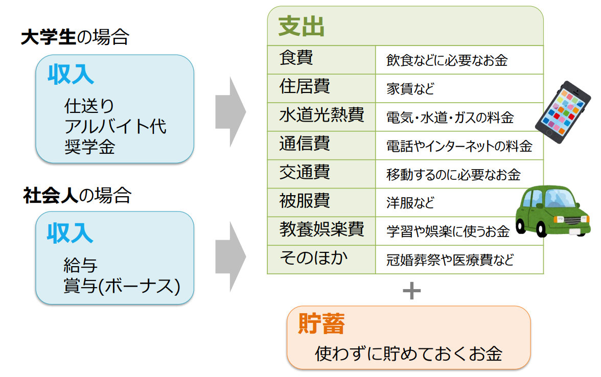 大学生や社会人になって、ひとり暮らしをする場合には、収入と支出を把握することが大切です。*4
