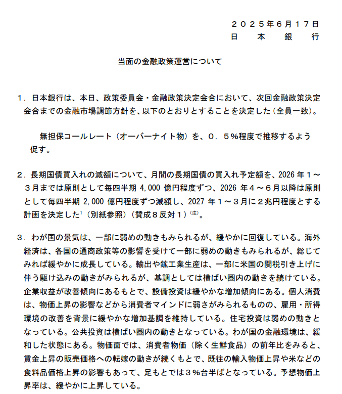 出所)日本銀行「当面の金融政策運営について(2025年6月17日)」