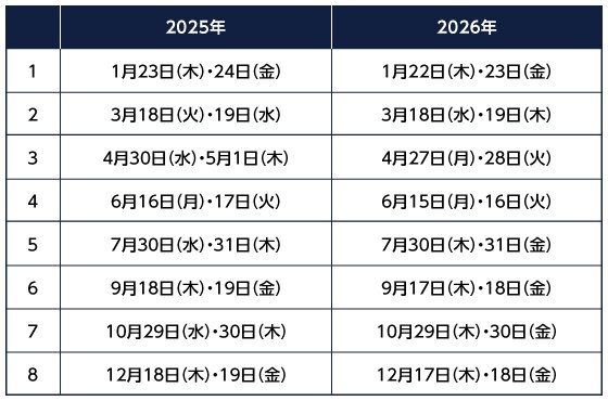 2025年および2026年の開催スケジュールは以下のとおりです。