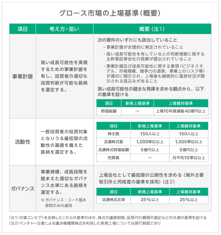 グロース市場は、高い成長可能性を実現するための事業計画及びその進捗の適時・適切な開示が行われ一定の市場評価が得られる一方、事業実績の観点から相対的にリスクが高い企業向けの市場です。*8