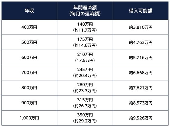年収に対する借入可能額の目安