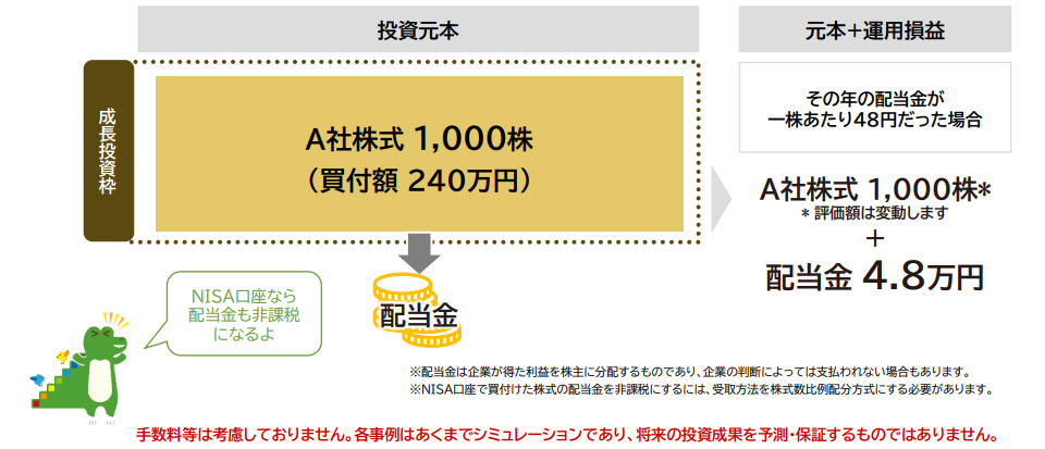成長投資枠でA社株式を2,400円で1,000株買い付け、そのまま1年間保有したら、どうなるのでしょうか。