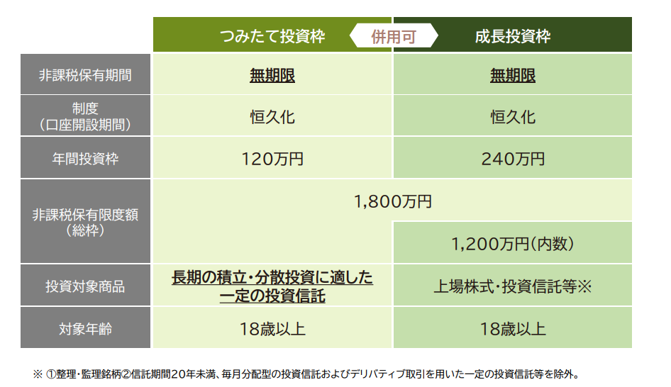 NISAには「つみたて投資枠」と「成長投資枠」の2つの投資枠があり、1つのNISA口座で併用することができます。*3