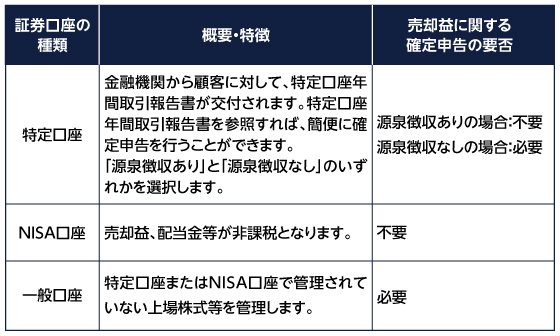 確定申告の要否は、証券口座の種類によって異なる