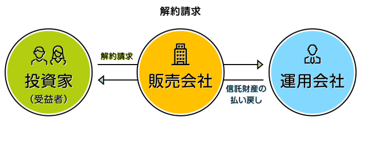 解約請求とは、証券会社などの販売会社を通して、信託財産の一部の解約を運用会社に請求する方法です(図2)。