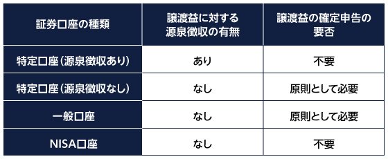 株式や投資信託を売却した際に得られた値上がり益(譲渡益)は、証券口座の種類によって源泉徴収の有無が異なります。