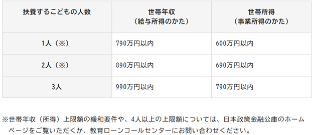 ただし、扶養する子どもの人数が2人までの場合は、一定の要件を満たせば世帯年収・所得の上限額が緩和されます。