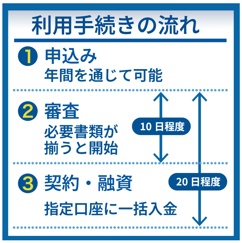申込みは年中いつでも受け付けられますが、融資の希望日に間に合うよう、教育費用が必要になる時期の2か月から3か月前に申し込むと安心です。
