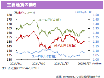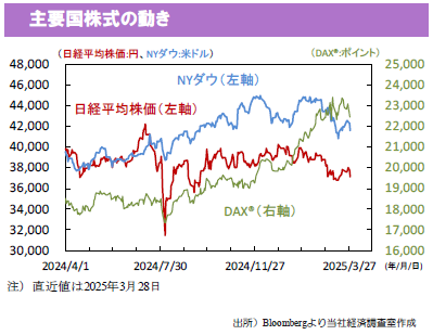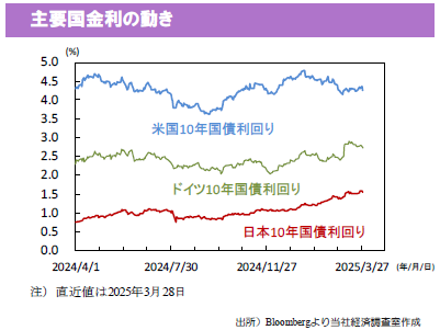 ◆今週も米政府による関税の動向が焦点。2日には相互関税が公表される見込み。(a)発動時期、(b)対象国、(c)各国向け税率に加え、各国による報復関税の動きにも注目。米国は3月のISM景気指標(1日:製造業、3日:サービス業)と雇用統計(4日)を公表。ISMでは関税を巡る不透明感で景況感が悪化しているかに注目。非農業部門雇用者数は前月差+13.8万人(2月+15.1万人)拡大と連邦政府職員削減の影響はまだ見られない見込み。(入村)