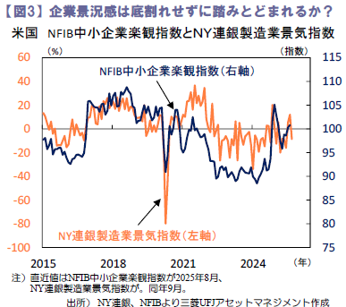 また、今週は政府閉鎖を受け9月消費者物価や同小売売上高の公表が見送られるも、9月NFIB中小企業楽観指数や10月NY連銀製造業景気指数などは公表予定で、企業心理に変調が見られないかが注視されます(図3)。(今井)