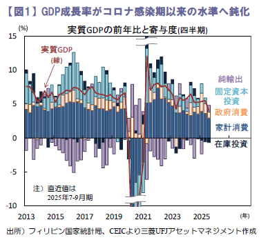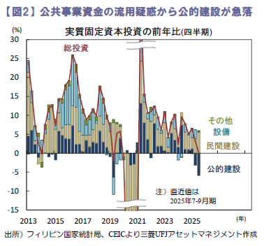 公共投資予算の不正流用疑惑に揺れるフィリピン。同問題の影響から足元の景気は急速に鈍化しています。